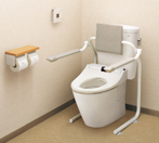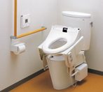 ![]() 車いすに乗ったままトイレへも ラクラク。 |
