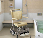 ![]() そのまま浴室に入れる車いすを 使うと介助がスムーズに。 |