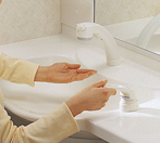 ![]() 薄型の洗面カウンターなら車いすが当たりません。 |