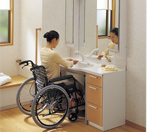 車いすの使用者は、車いすに座ったままでは洗面器に当たって近寄れない・・・というときに