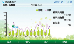 夜、帰ってきてからでも、今日一日の電気の動きが確かめられます。